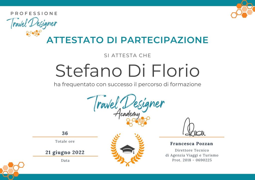 Questo mi permette oggi di progettare viaggi in modo personalizzato, strutturato e conforme a tutte le normative, offrendo un servizio affidabile, consapevole e curato in ogni dettaglio.